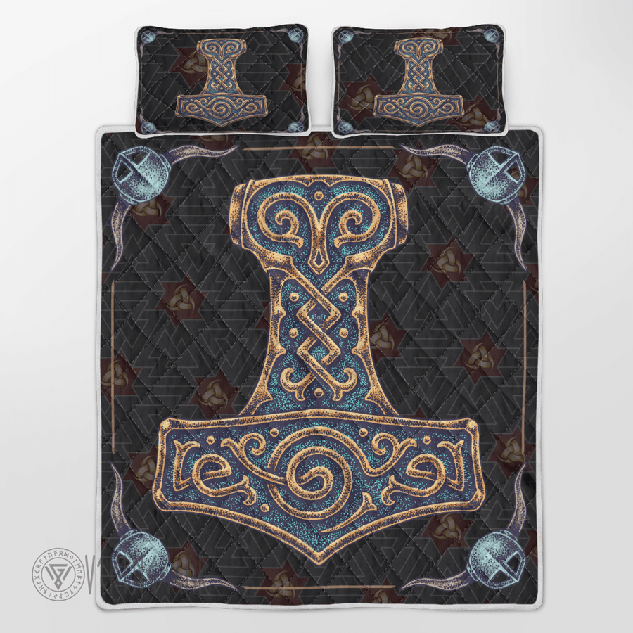 With its design inspired by Norse mythology, our Thor Hammer Art Viking quilt set captures the essence of the Viking spirit. Introduce this piece into your space and confidently display your style.