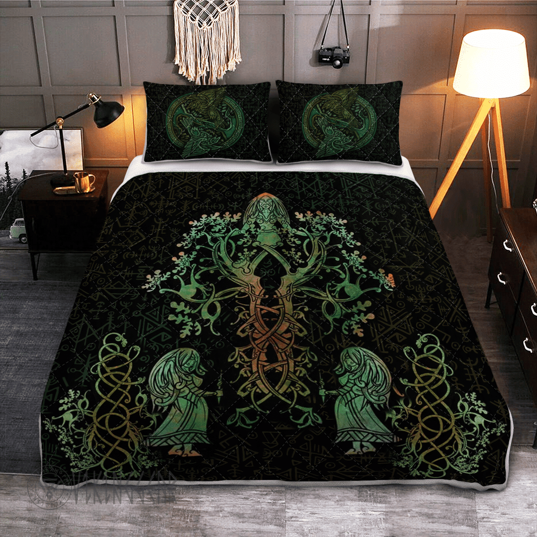 With its design inspired by Norse mythology, our Tree Of Life Raven Old Norse Viking quilt set captures the essence of the Viking spirit. Introduce this piece into your space and confidently display your style.