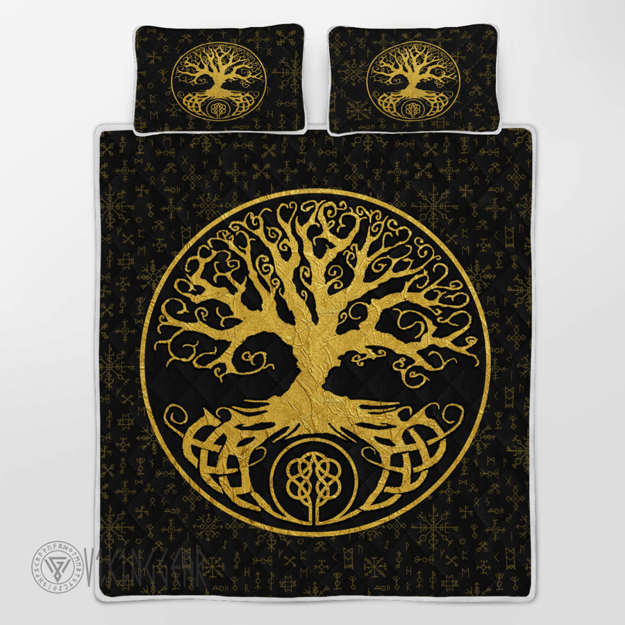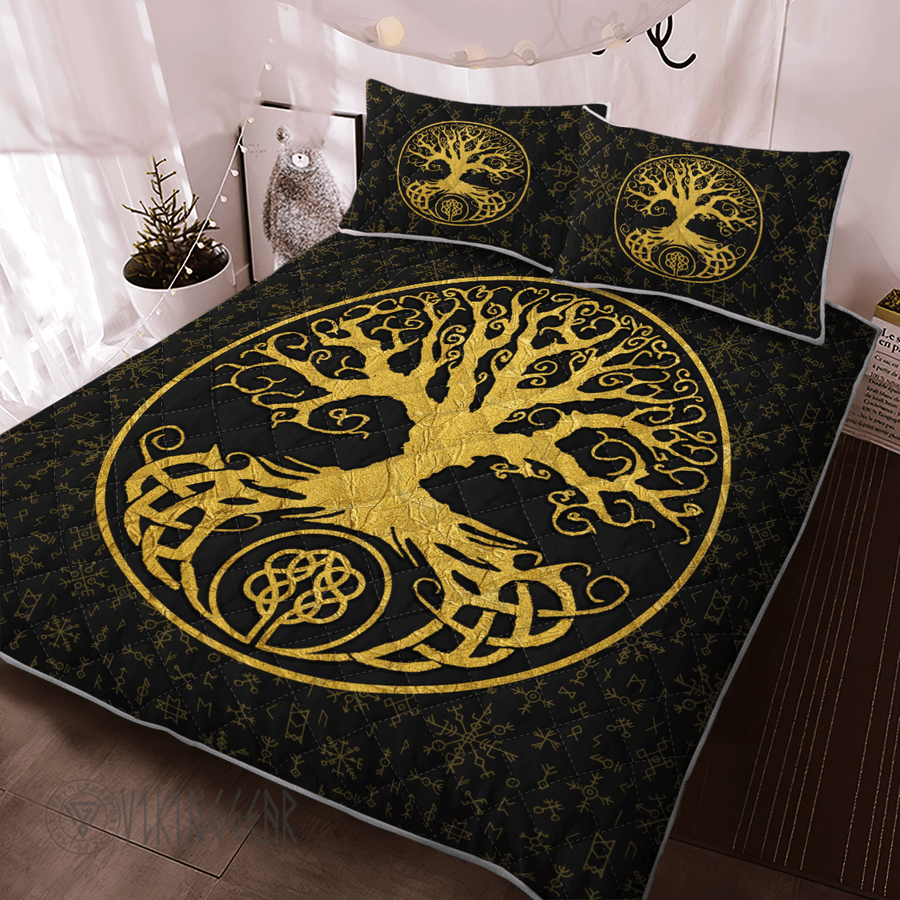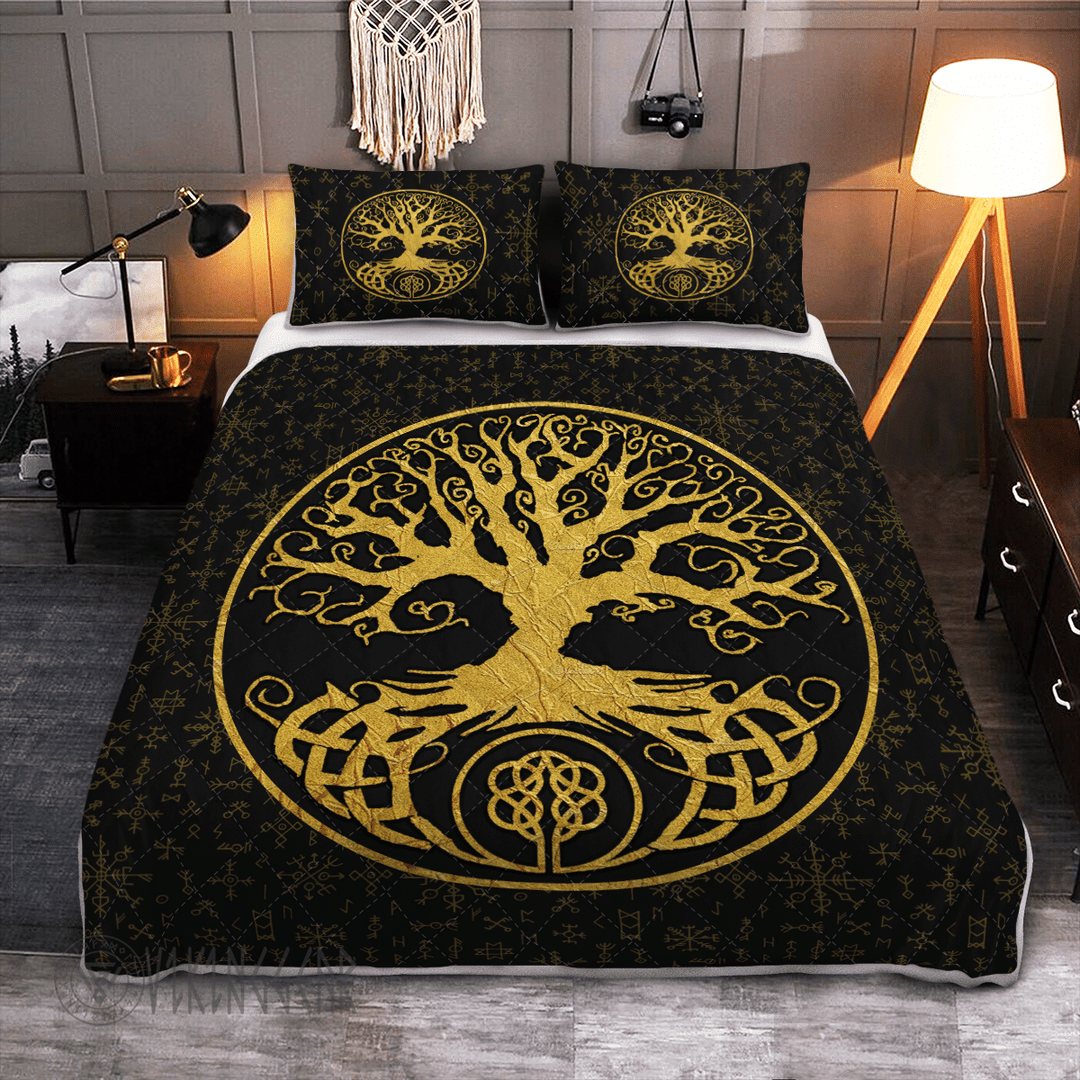 With its design inspired by Norse mythology, our Tree Of Life Yggdrasil Golden Viking quilt set captures the essence of the Viking spirit. Introduce this piece into your space and confidently display your style.