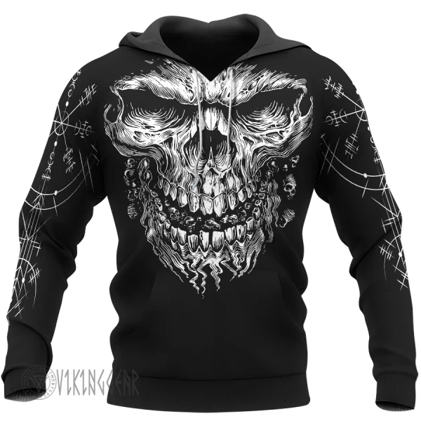 With a design inspired by Norse mythology, Vegvisir Skull Viking Hoodie embodies Viking spirit. Own it to confidently showcase your Viking style.