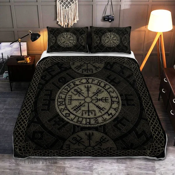 With its design inspired by Norse mythology, our Vegvísir With Elder Futhark Stone Distressed Viking Quilt Set captures the essence of the Viking spirit. Introduce this piece into your space and confidently display your style.