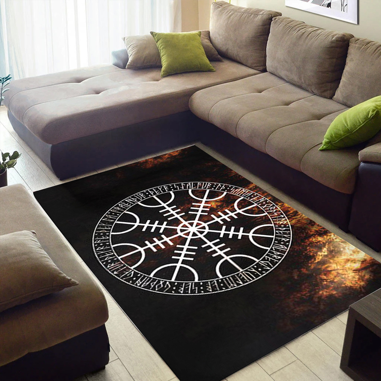 With its design inspired by Norse mythology, our Helm of Awe Symbol of Protection and Power Viking area rug captures the essence of the Viking spirit. Introduce this piece into your space and confidently display your style.