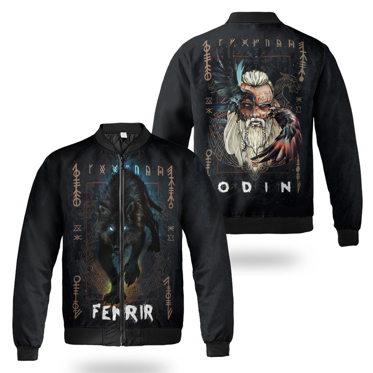 With a design inspired by Norse mythology, Fenrir And Odin Graphic Art Viking Bomber Jacket embodies Viking spirit. Own it to confidently showcase your Viking style.