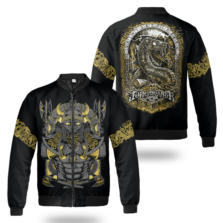 With a design inspired by Norse mythology, JORMUNGANDR Son of Loki Viking Bomber Jacket embodies Viking spirit. Own it to confidently showcase your Viking style.