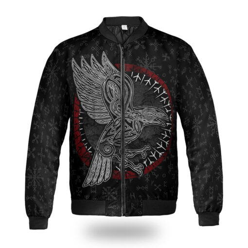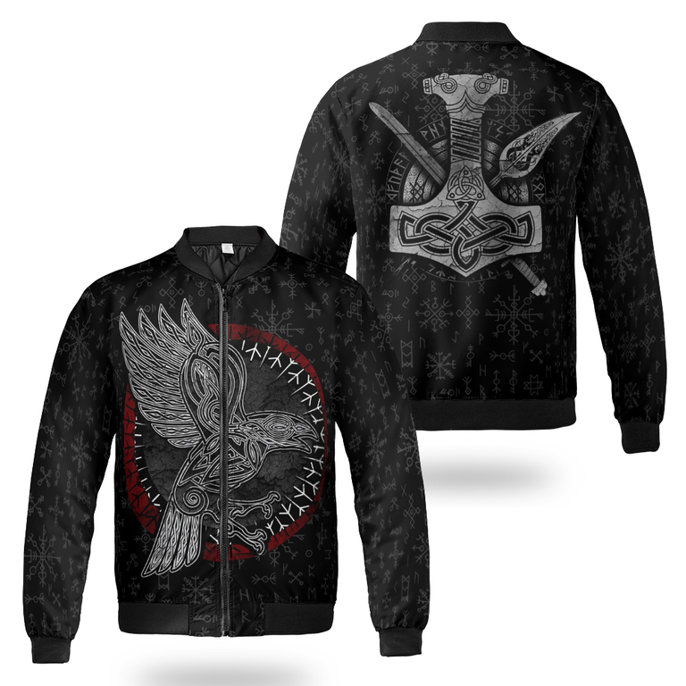 With a design inspired by Norse mythology, Raven Hammer and spear of Odin Viking Bomber Jacket embodies Viking spirit. Own it to confidently showcase your Viking style.