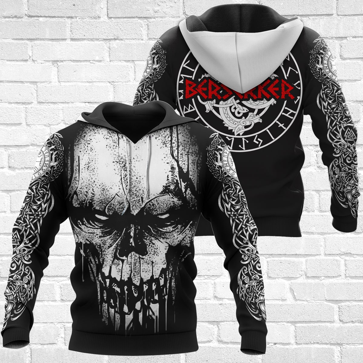With a design inspired by Norse mythology, Berserker Skull Viking Hoodie embodies Viking spirit. Own it to confidently showcase your Viking style.