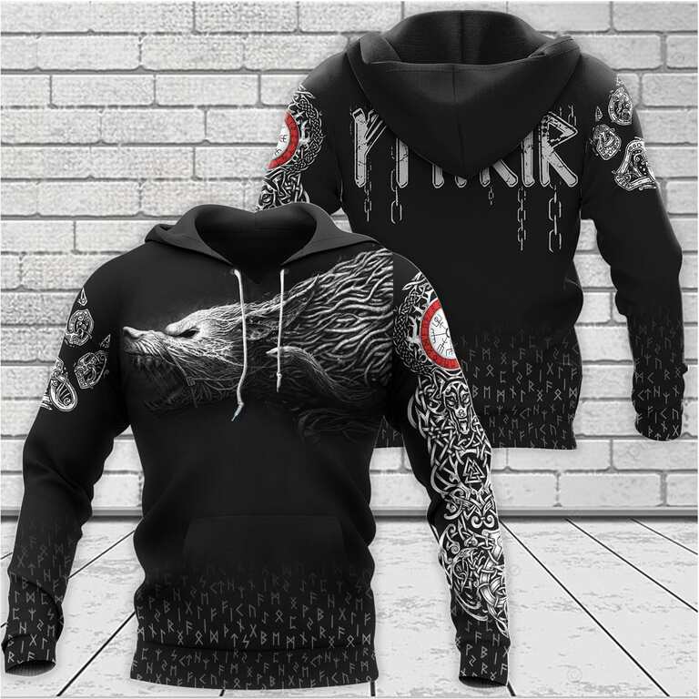 With a design inspired by Norse mythology, Fenrir Norse Wolf Rune Viking Hoodie embodies Viking spirit. Own it to confidently showcase your Viking style.