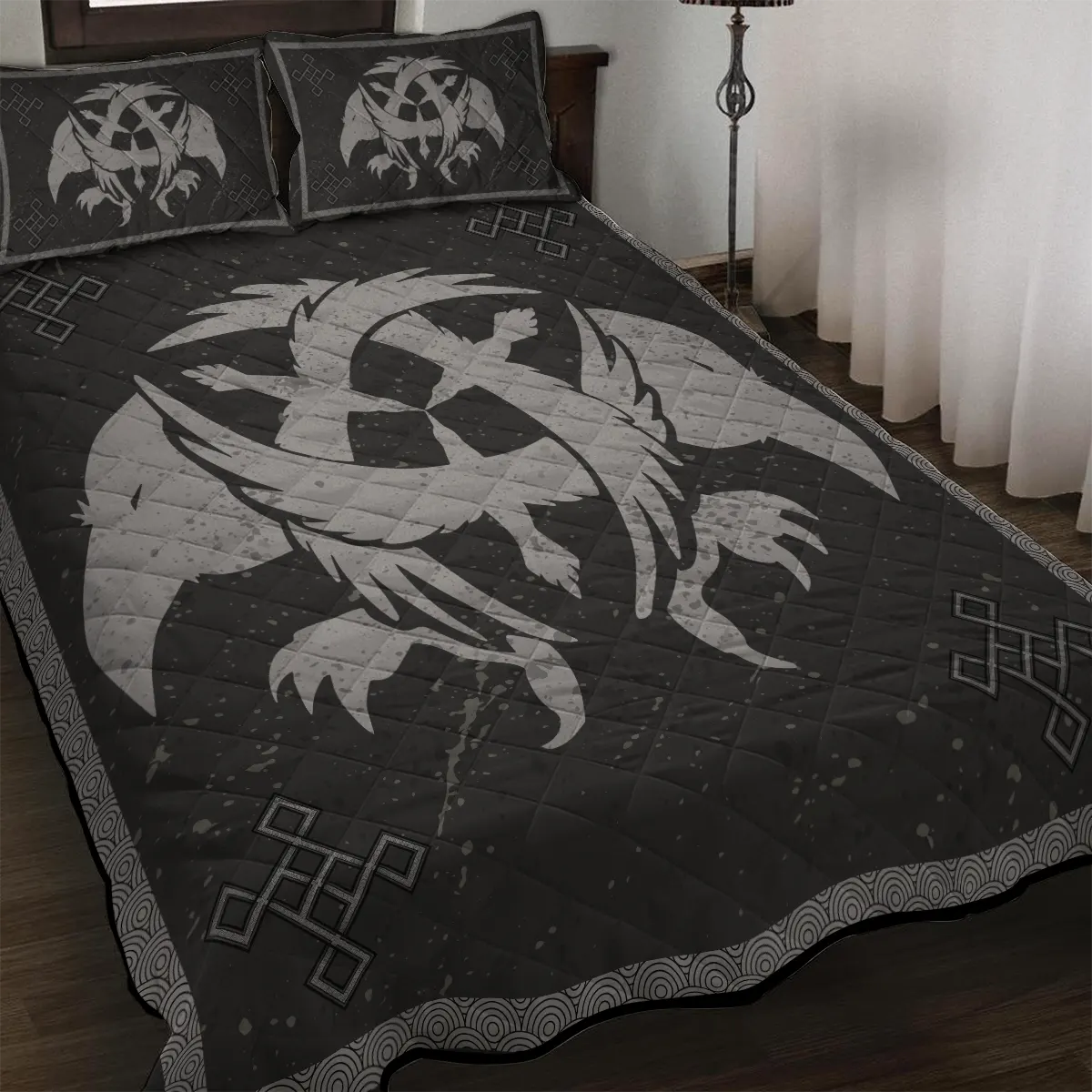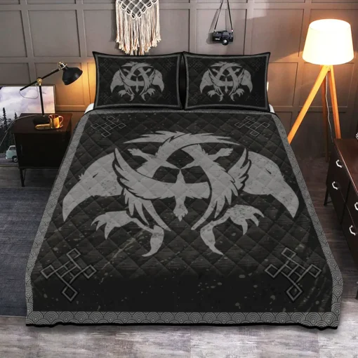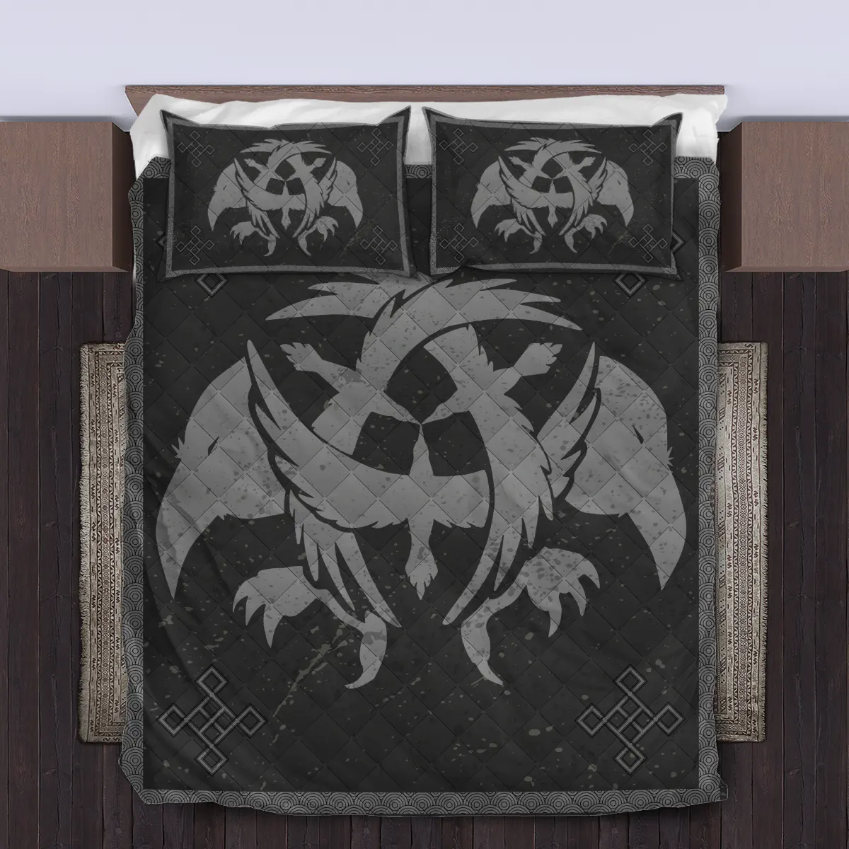 Channel Norse wisdom with a Viking quilt bedding set featuring the raven symbol—emblem of insight, mystery, and the guiding spirit of the Viking age.