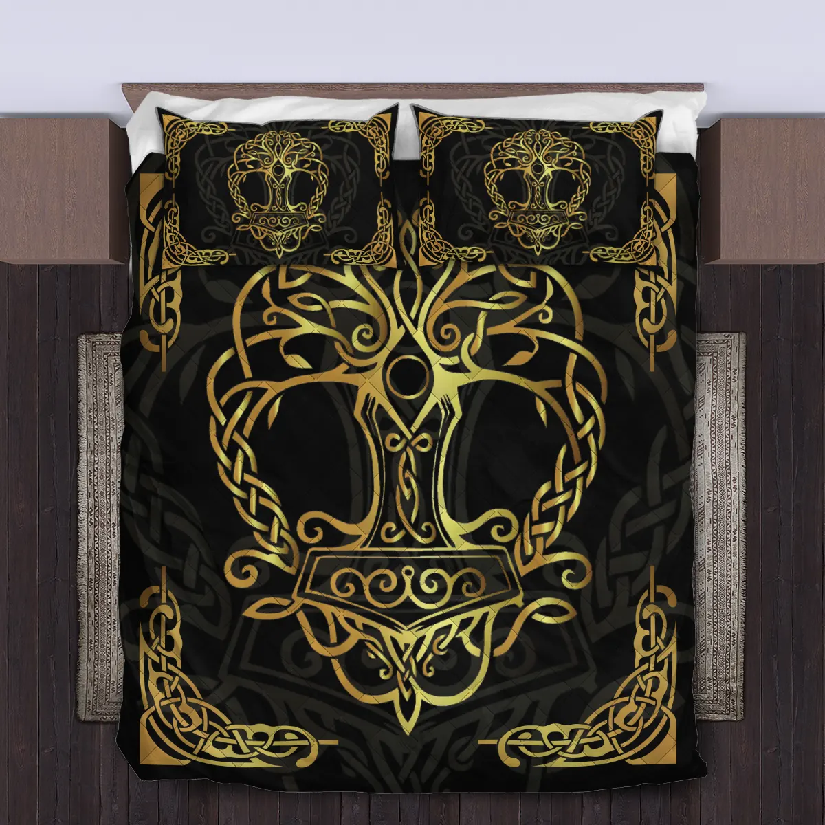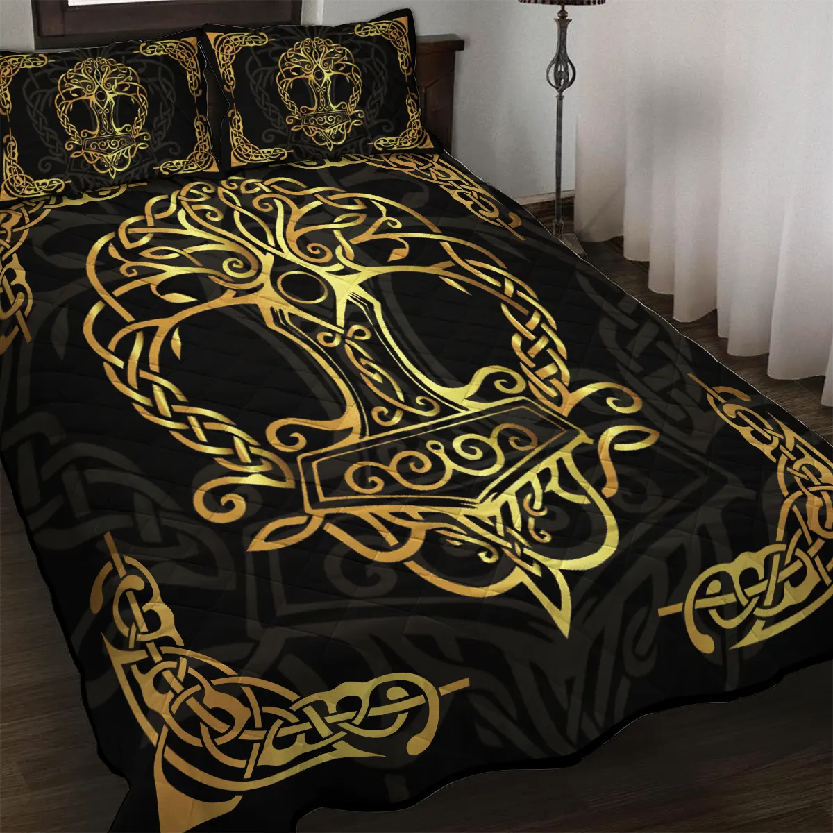 Infuse your space with Norse legacy through a Viking quilt bedding set adorned with Yggdrasil art—the sacred tree symbolizing life, balance, and eternal strength.