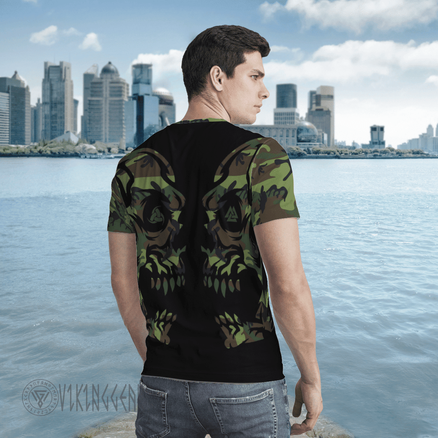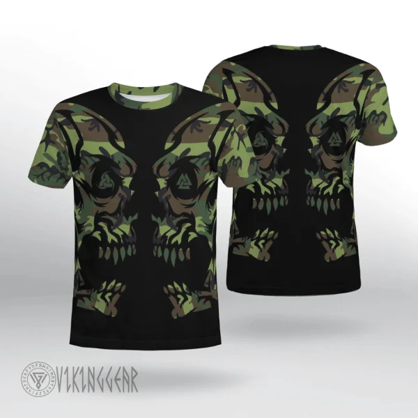 With a design inspired by Norse mythology, Viking Skull Camo Art Viking T-shirt embodies Viking spirit. Own it to confidently showcase your Viking style.