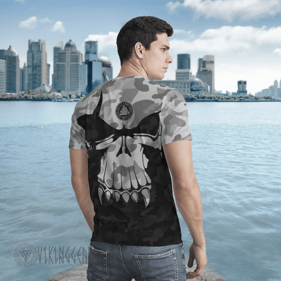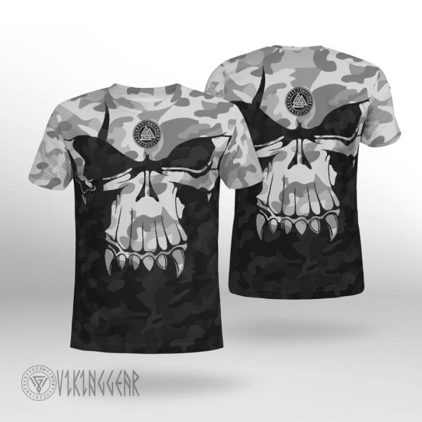 With a design inspired by Norse mythology, Skull Camo Valknut Viking T-shirt embodies Viking spirit. Own it to confidently showcase your Viking style.