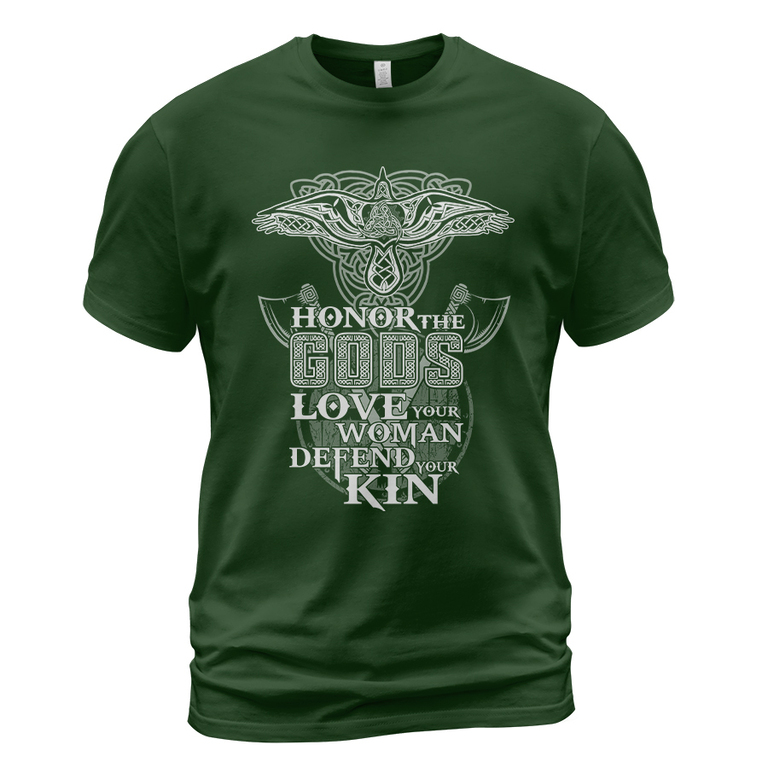 With a design inspired by Norse mythology, Honor The Gods Love Your Woman Viking T-shirt embodies Viking spirit. Own it to confidently showcase your Viking style.