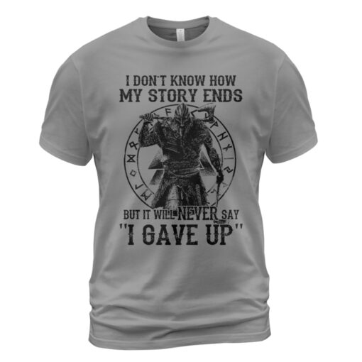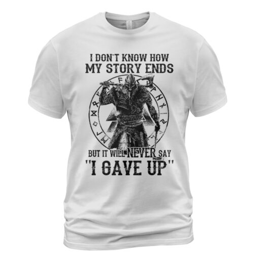 With a design inspired by Norse mythology, My Story Ends But It Will Never Say ‘I Gave Up’ Viking T-shirt embodies Viking spirit. Own it to confidently showcase your Viking style.
