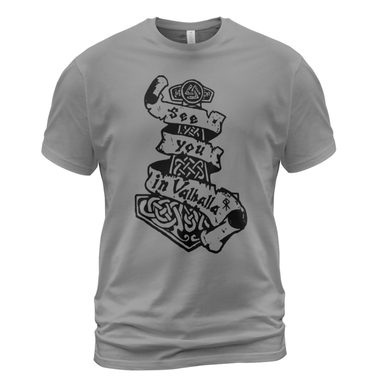 With a design inspired by Norse mythology, See You In Valhalla Hammer Viking T-shirt embodies Viking spirit. Own it to confidently showcase your Viking style.