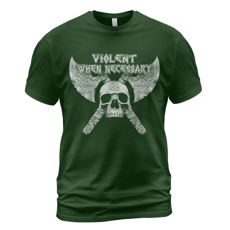 With a design inspired by Norse mythology, Violent When Necessary Skull Axe Viking T-shirt embodies Viking spirit. Own it to confidently showcase your Viking style.
