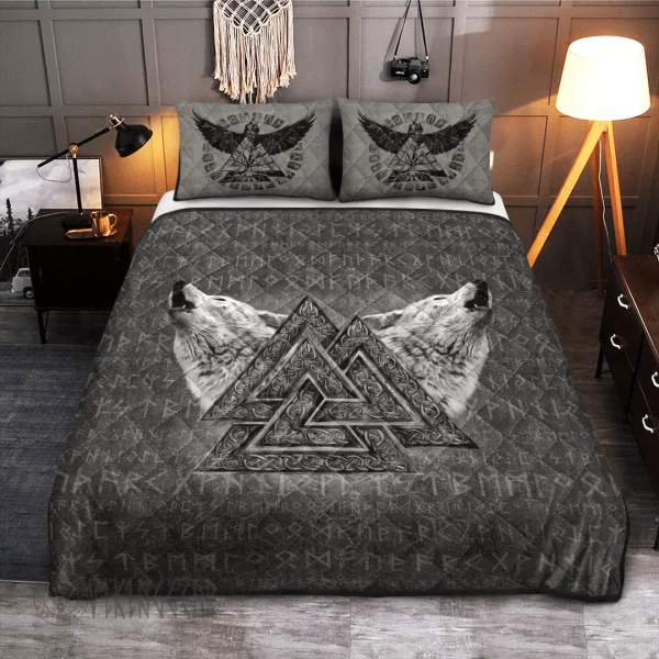 With its design inspired by Norse mythology, our Wolf With Valknut And Rune Viking quilt set captures the essence of the Viking spirit. Introduce this piece into your space and confidently display your style.