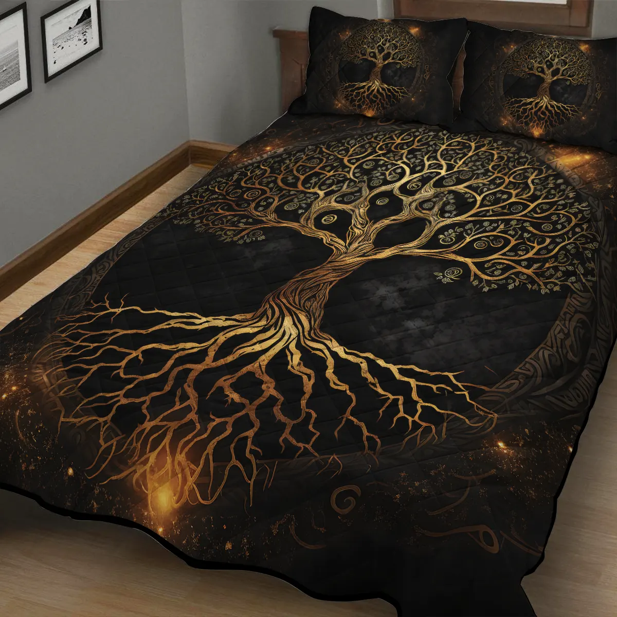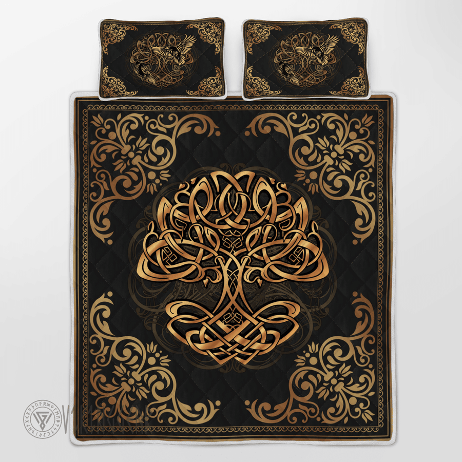 With its design inspired by Norse mythology, our Yggdrasil Odin’s ravens Huginn and Muninn Viking quilt set captures the essence of the Viking spirit. Introduce this piece into your space and confidently display your style.