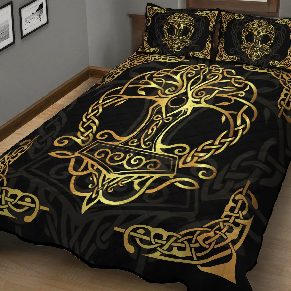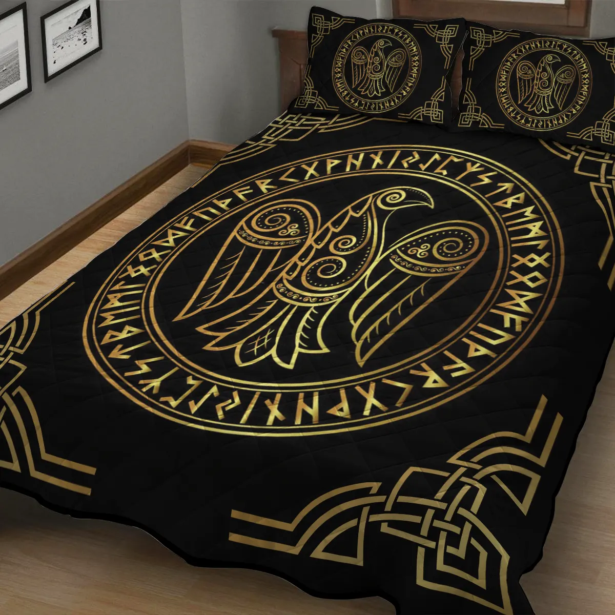 With its design inspired by Norse mythology, our Yin Yang Wolf and Raven Viking Quilt Set captures the essence of the Viking spirit. Introduce this piece into your space and confidently display your style.